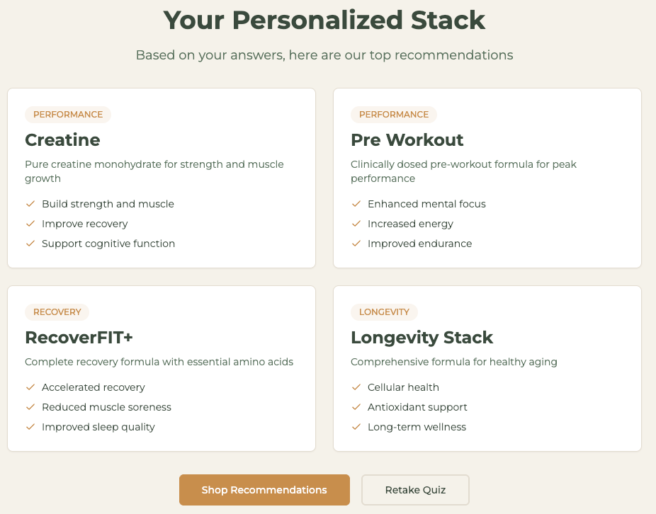 You know yourself better than anyone. We created a custom supplement quiz to help you find the perfect products for your specific needs.